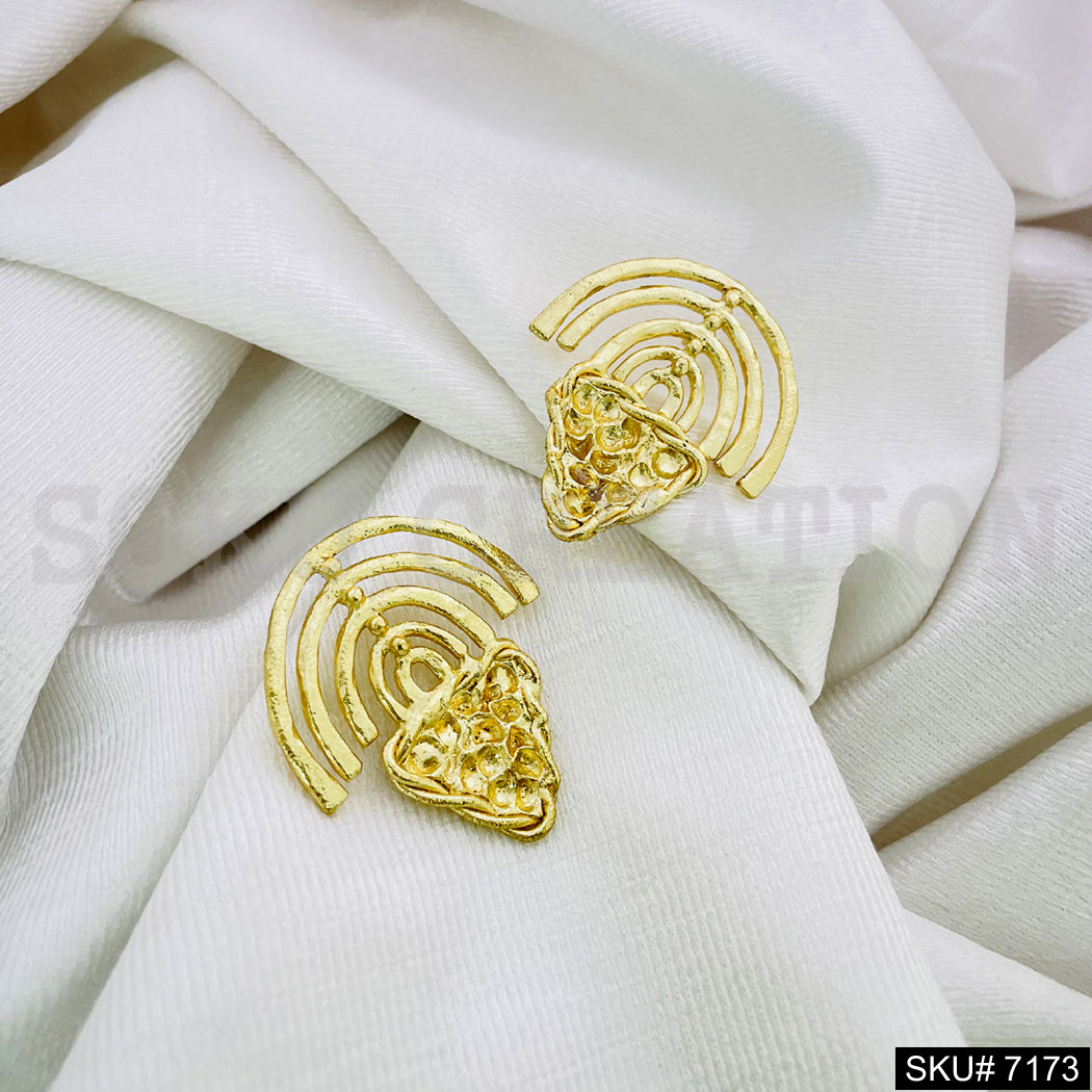Gold Plated Statement Curved and Triangle style Shape Twisted Wire Handmade Stud Earring SKU7173