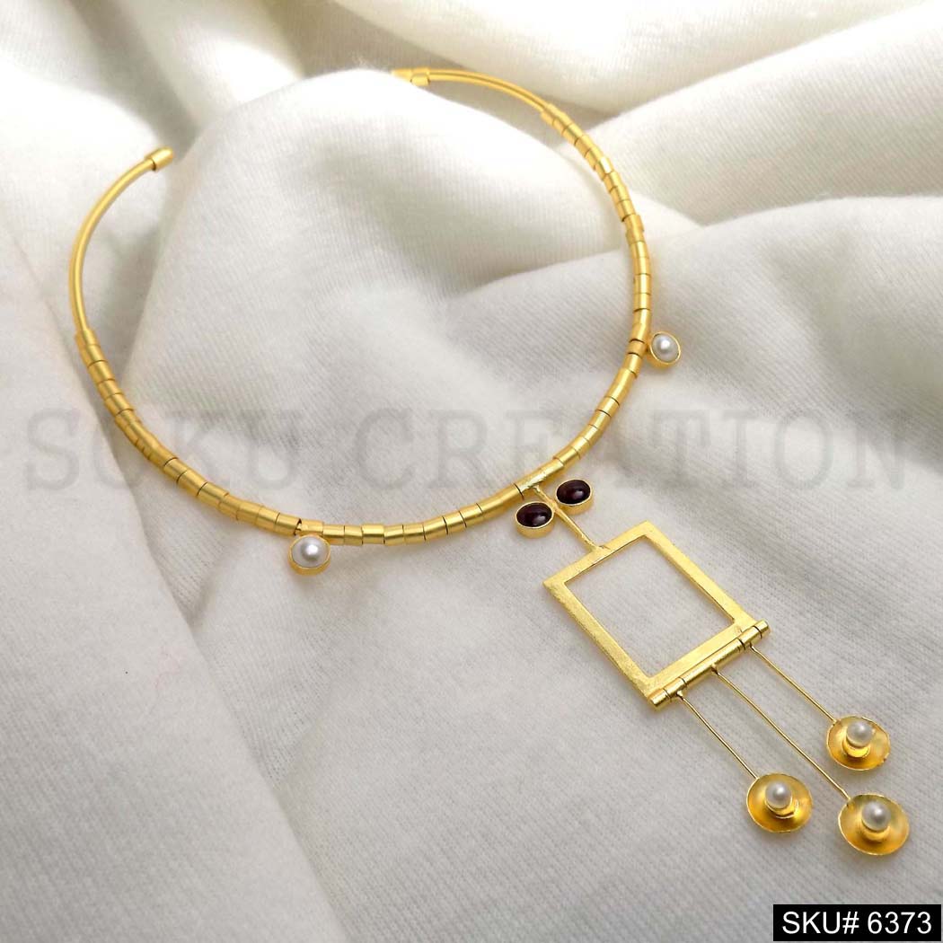 Gold Plated Statement gemstone and white Pearl of Choker SKU6373