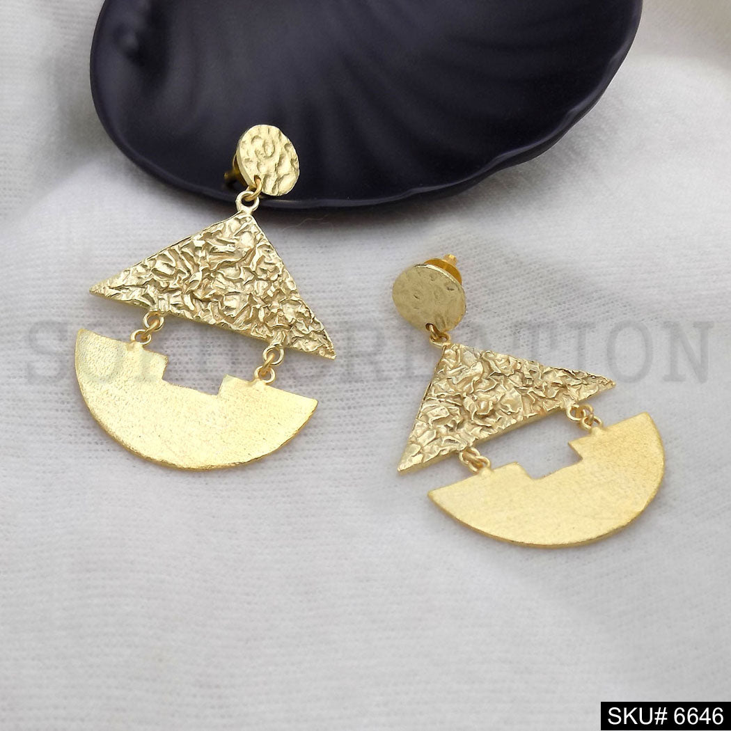 Gold plated Statement Hammered Unique Handmade Design of Drop & Dangle Earring SKU6646