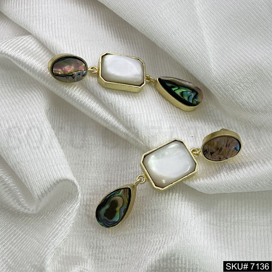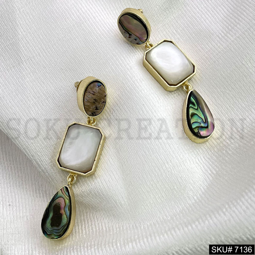 Gold Plated Statement Labra and White Stone Handmade Drop and Dangle Earring SKU7136