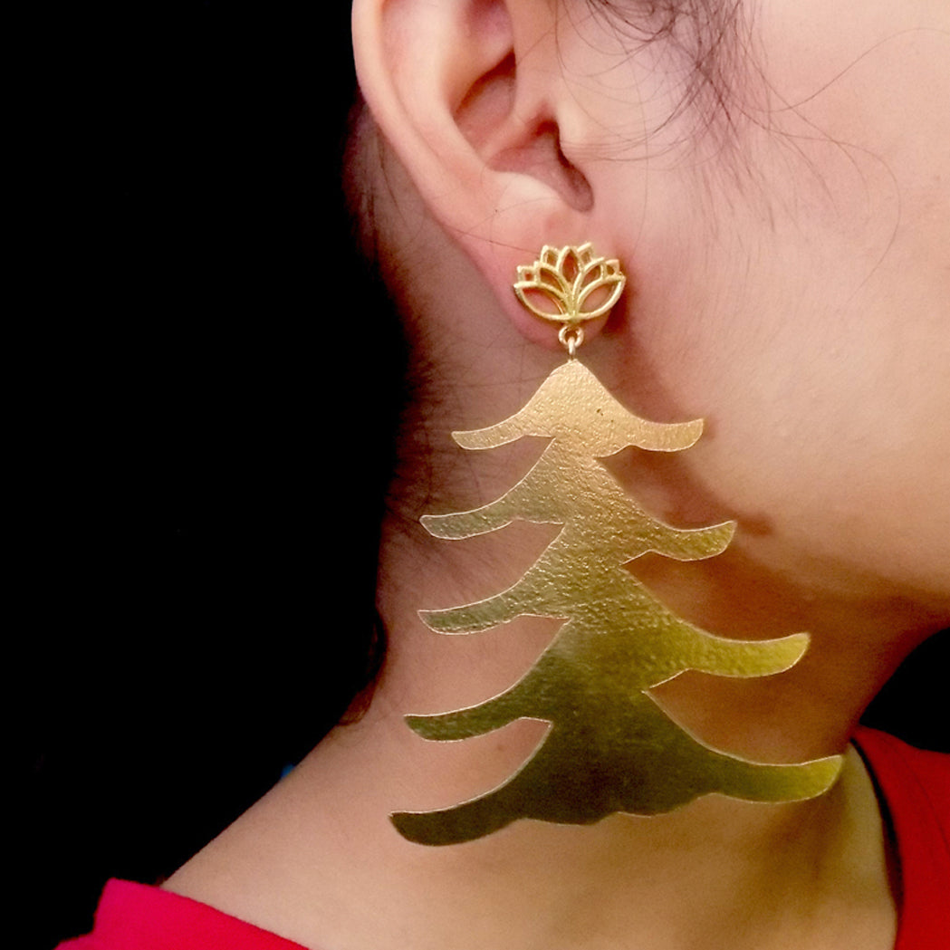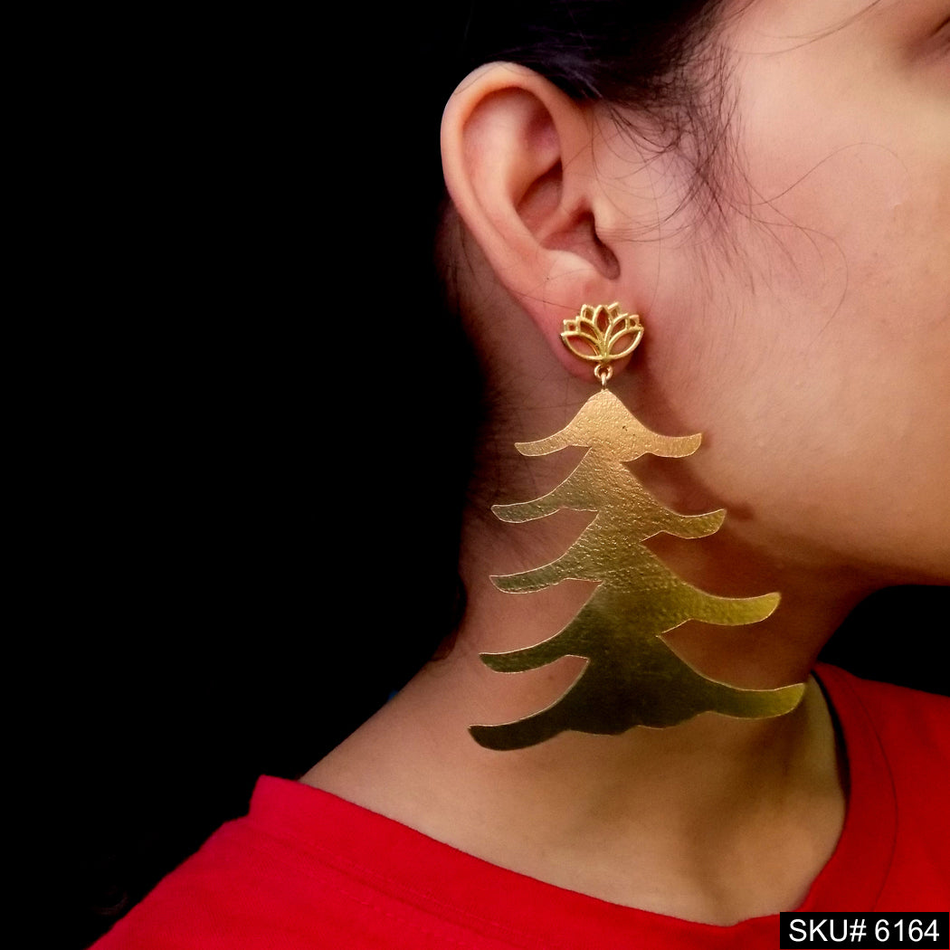Gold plated Statement Lotus Christmas Tree Design Drop and Dangle Earring SKU6164