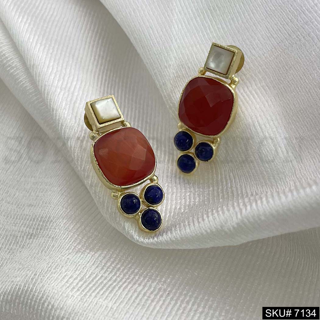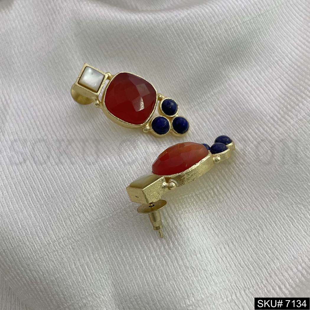 Gold Plated Statement Red and Blue Stone Handmade Drop and Dangle Earring SKU7134