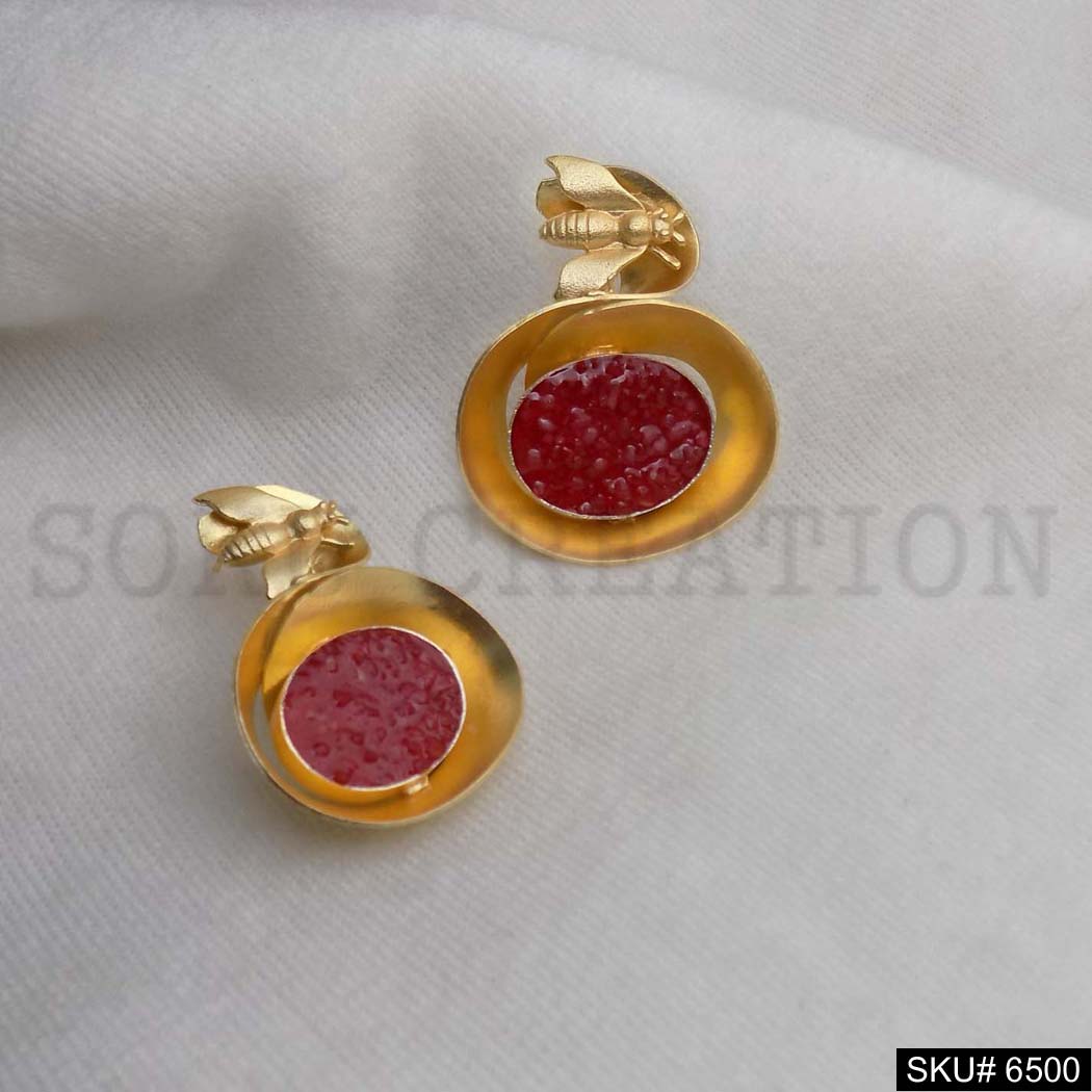 Gold plated Statement Red Stone Dragonfly Stud Earrings SKU6500