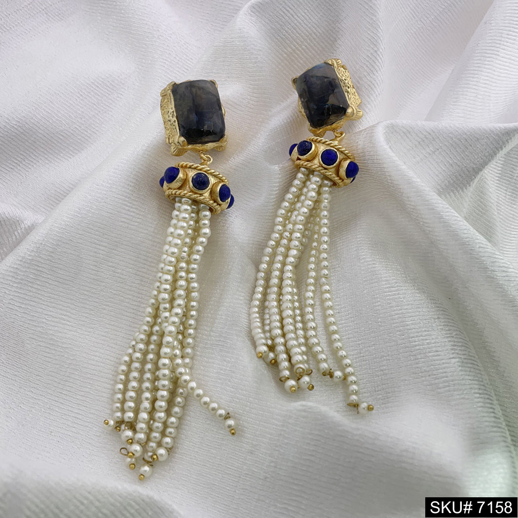Gold Plated Statement Rounded Labra stone Multi White Pearl of Layers Handmade Drop and Dangle Earring SKU7158