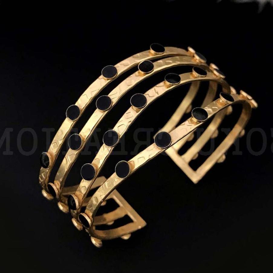 Gold Plated Statement Rounded Multi Black Stone Design of Cuff SKU6971