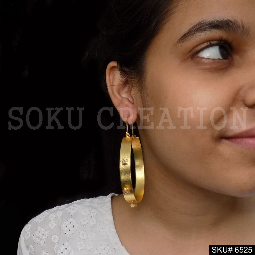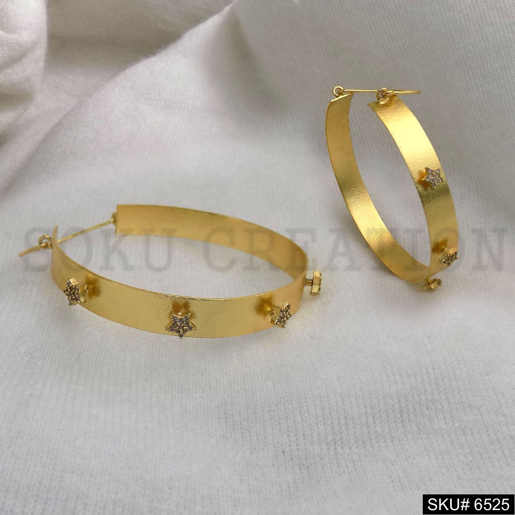 Gold plated Statement Rounded Small Star Hoops Earrings SKU6525