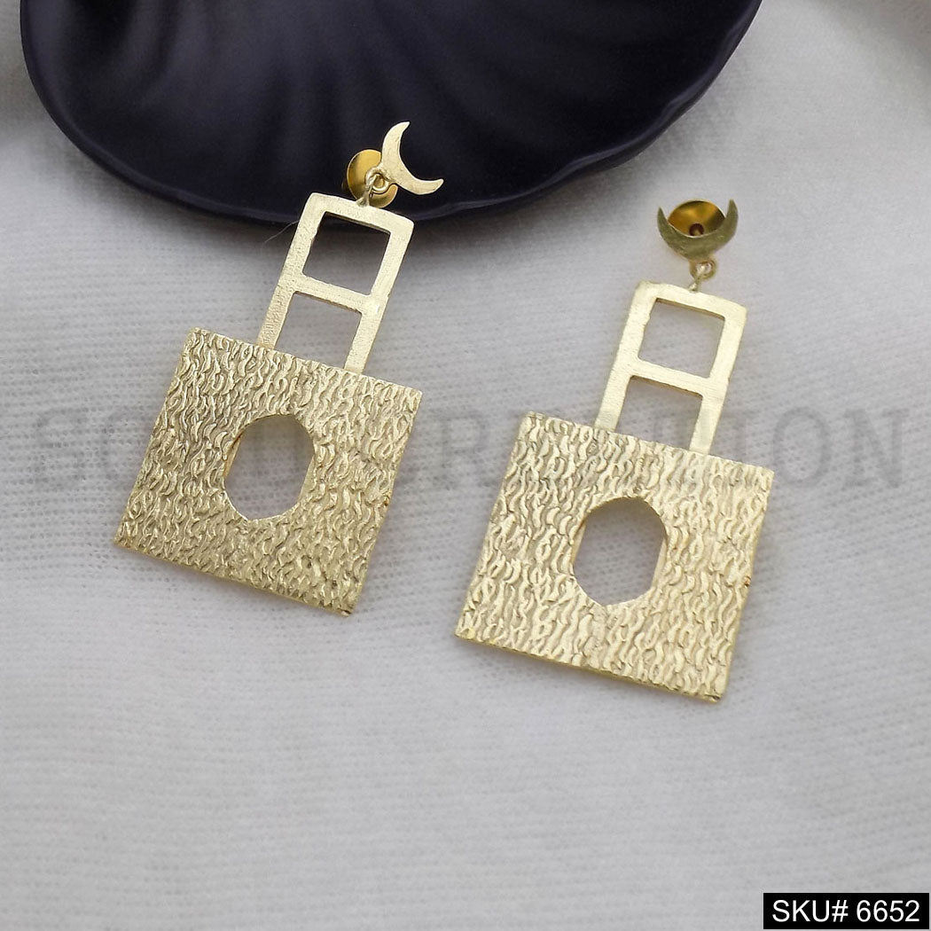 Gold plated Statement Small Half Moon Unique Handmade Design of Drop & Dangle Earring SKU6652