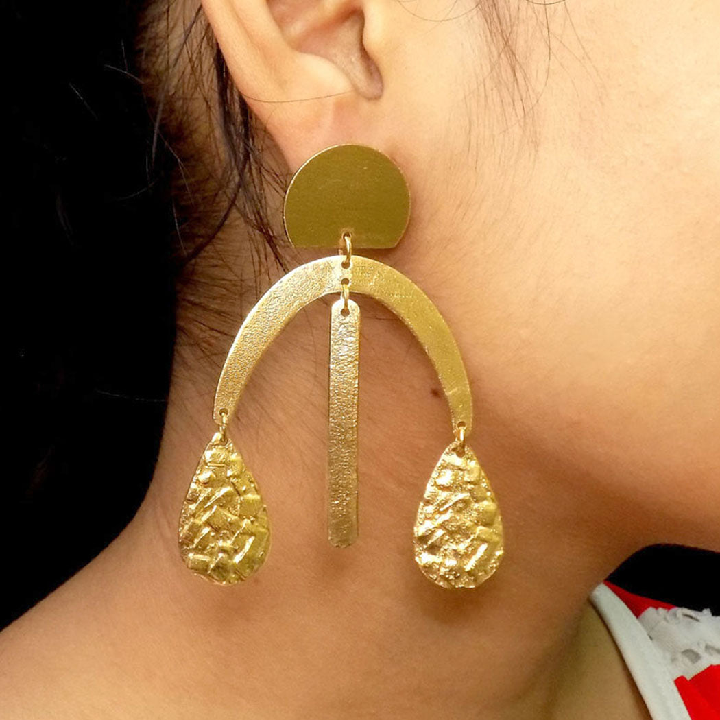 Material: Brass (non allergic )Wipe your jewelry with a soft cloth after every useAlways store your jewelry in a flat box to avoid accidental scratchesKeep sprays and perfumes away from your jewelryDo not soak your jewelry in waterClean your jewelry using a soft brush, dipped in jewelry cleaning solution only