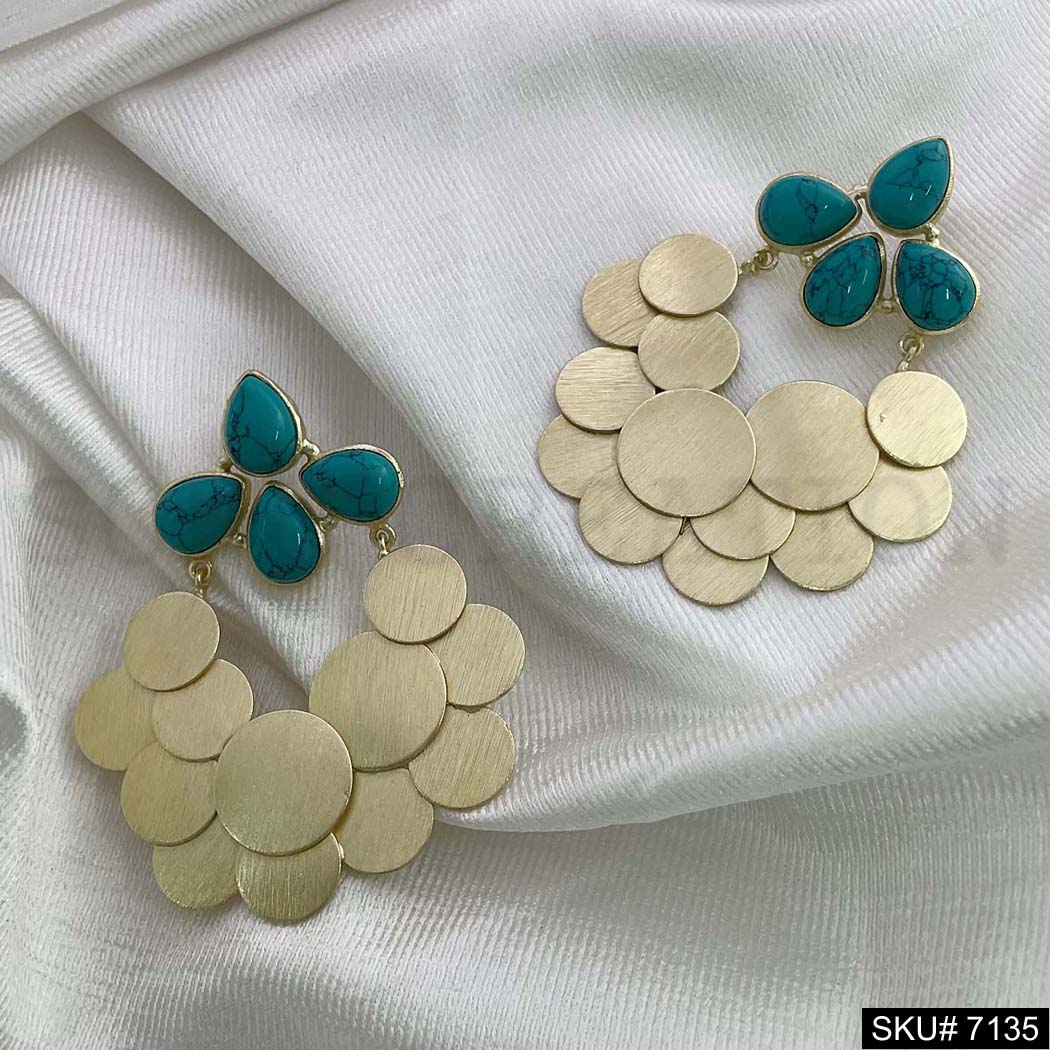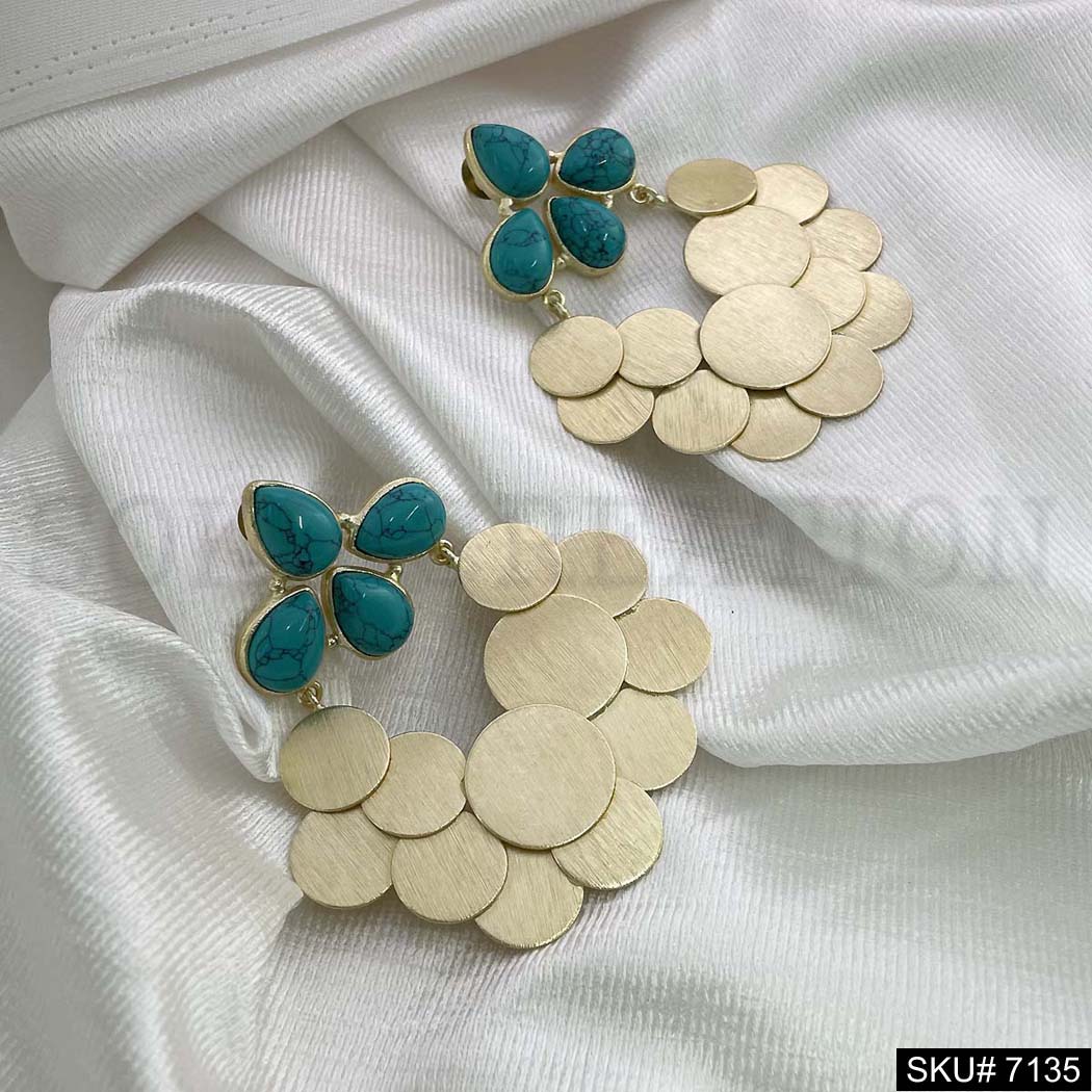 Gold Plated Statement Turquoise Handmade Drop and Dangle Earring SKU7135