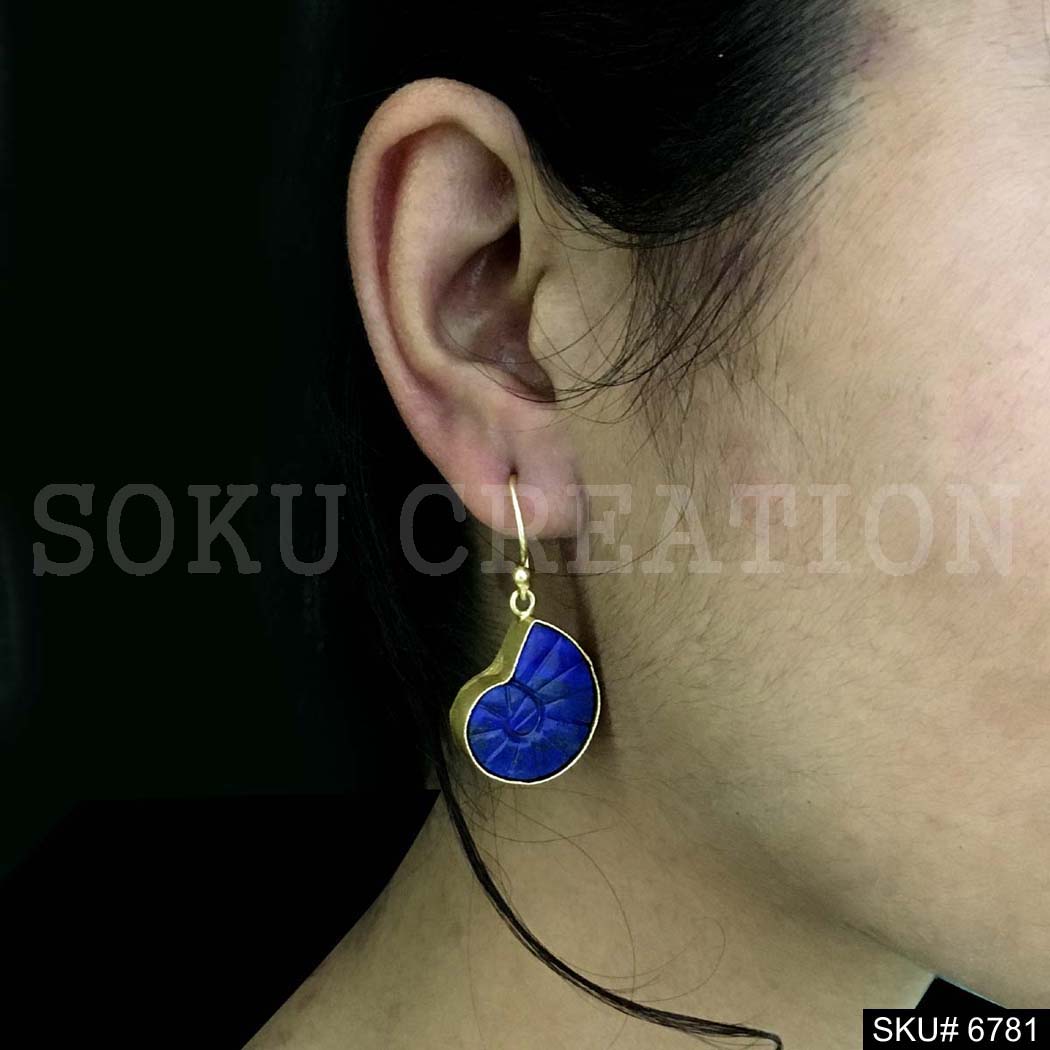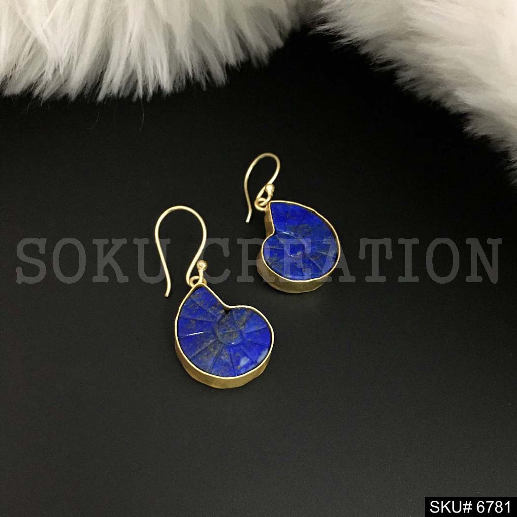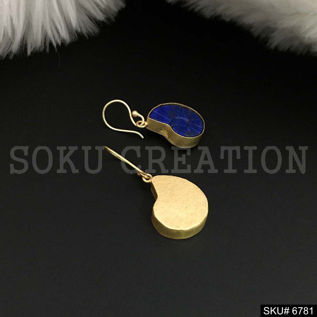 Gold Plated Style Blue Gemstone Mango Shape Ear Wire Earrings SKU6781