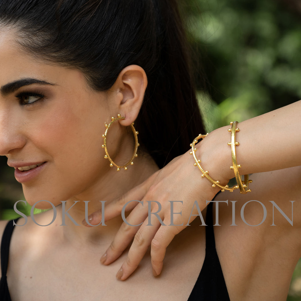 Material: Brass (non allergic )Wipe your jewelry with a soft cloth after every useAlways store your jewelry in a flat box to avoid accidental scratchesKeep sprays and perfumes away from your jewelryDo not soak your jewelry in waterClean your jewelry using a soft brush, dipped in jewelry cleaning solution only