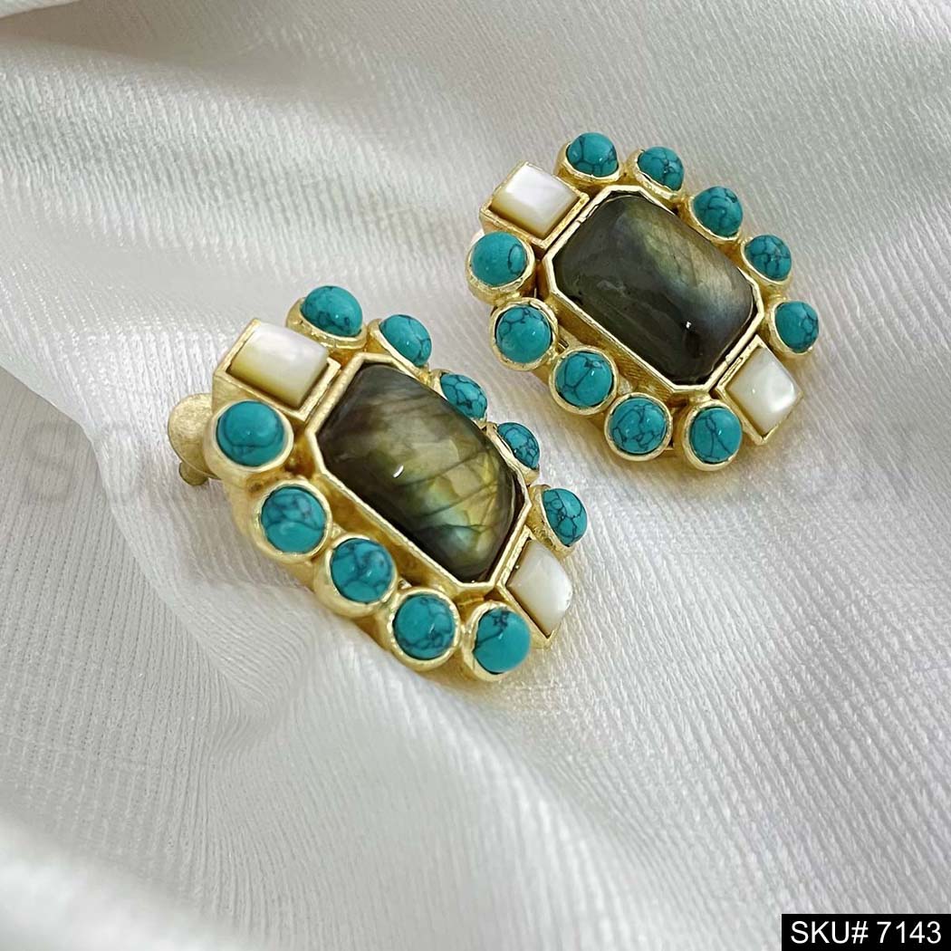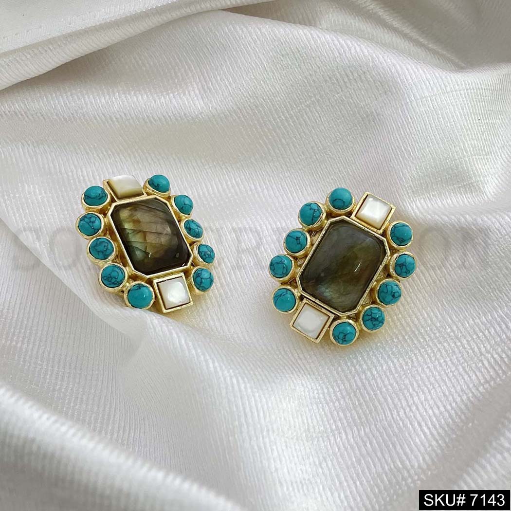 Gold Plated Turquoise and Labra Stone Handmade Big Stud Earring SKU7143