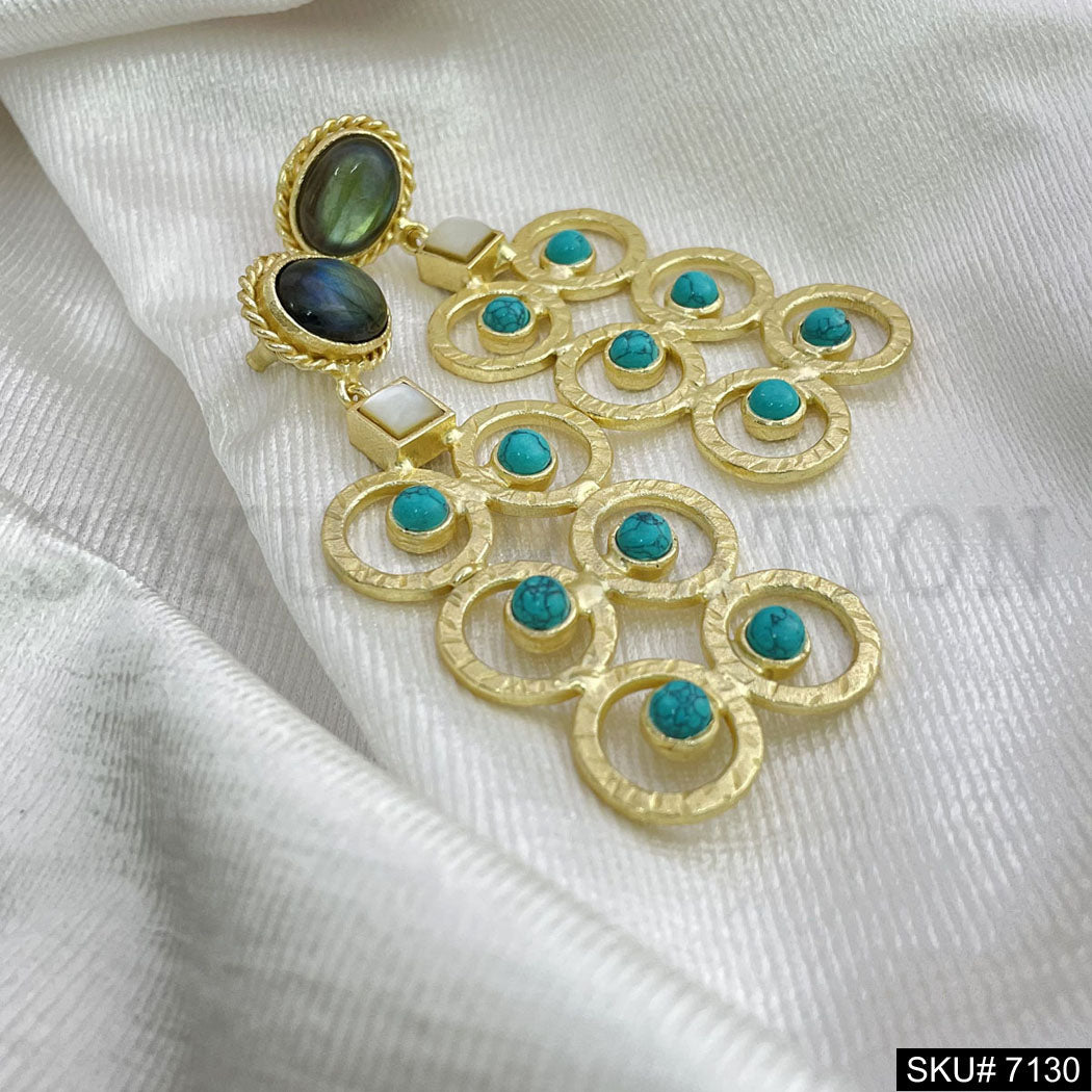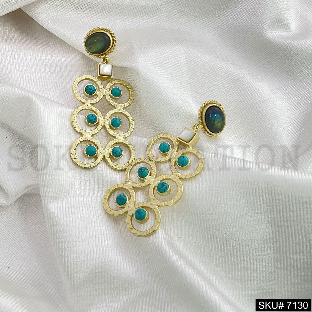 Gold Plated Twisted Wire With Labra and Turquoise Stone Hnadmade Drop and Dangle Earring SKU7130