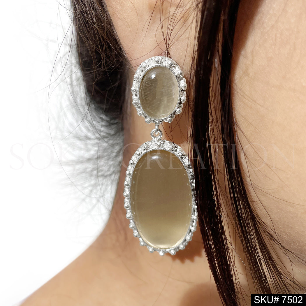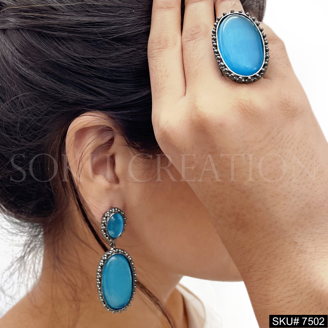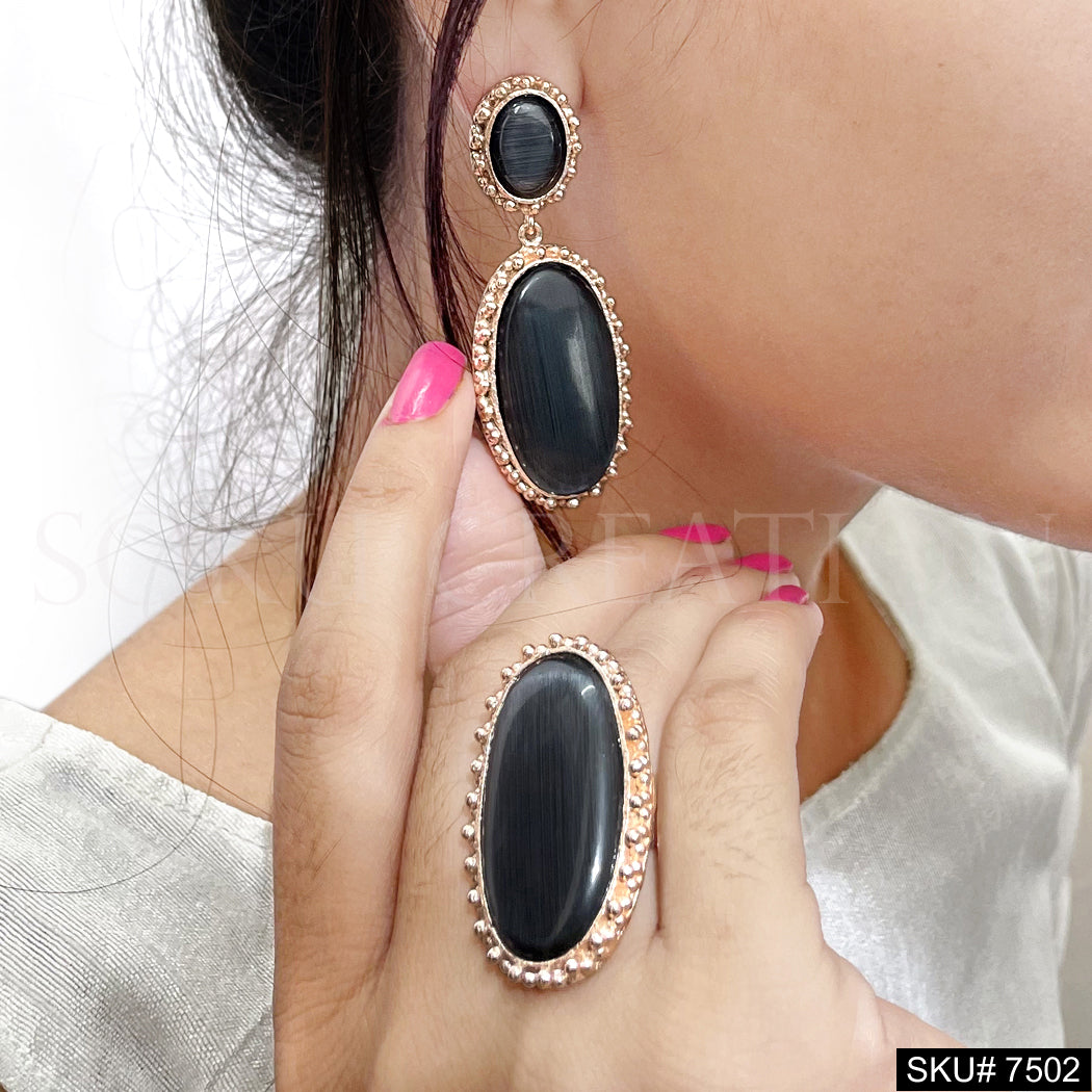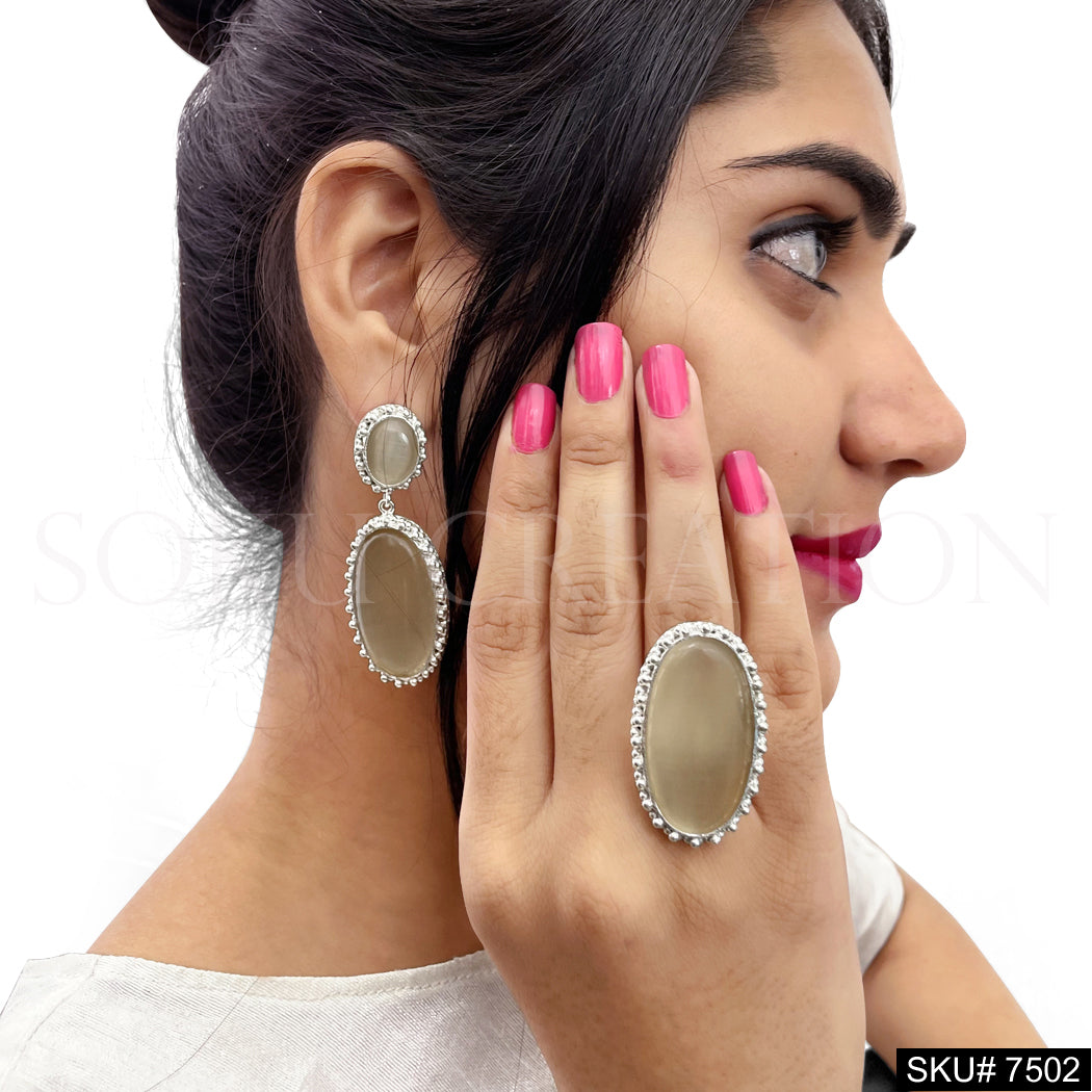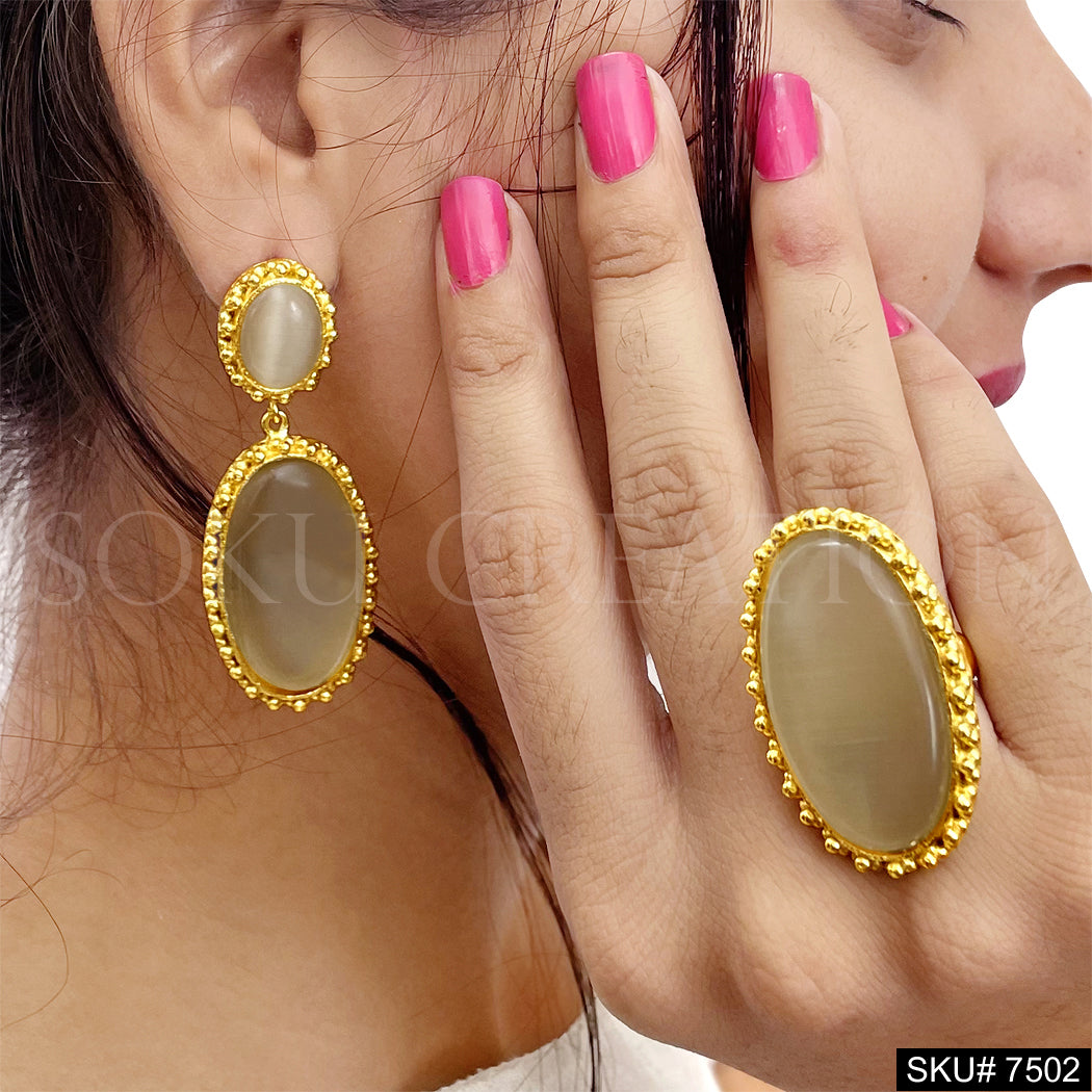 Gold plated Unique Design Monalisa Stone of Drop and Dangle Earring and Ring SKU7502