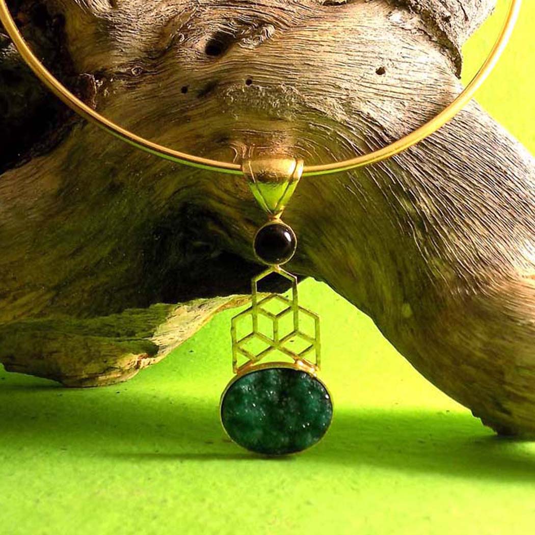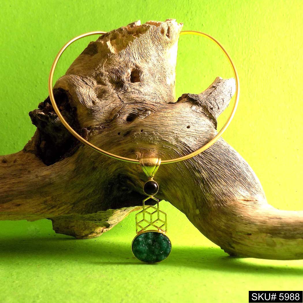 Gold plated Unique Designer Choker With A Big Pendent Green Stone SKU5988