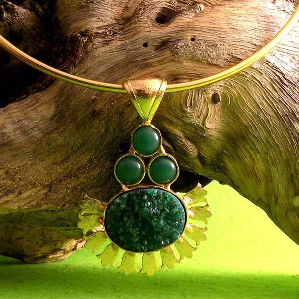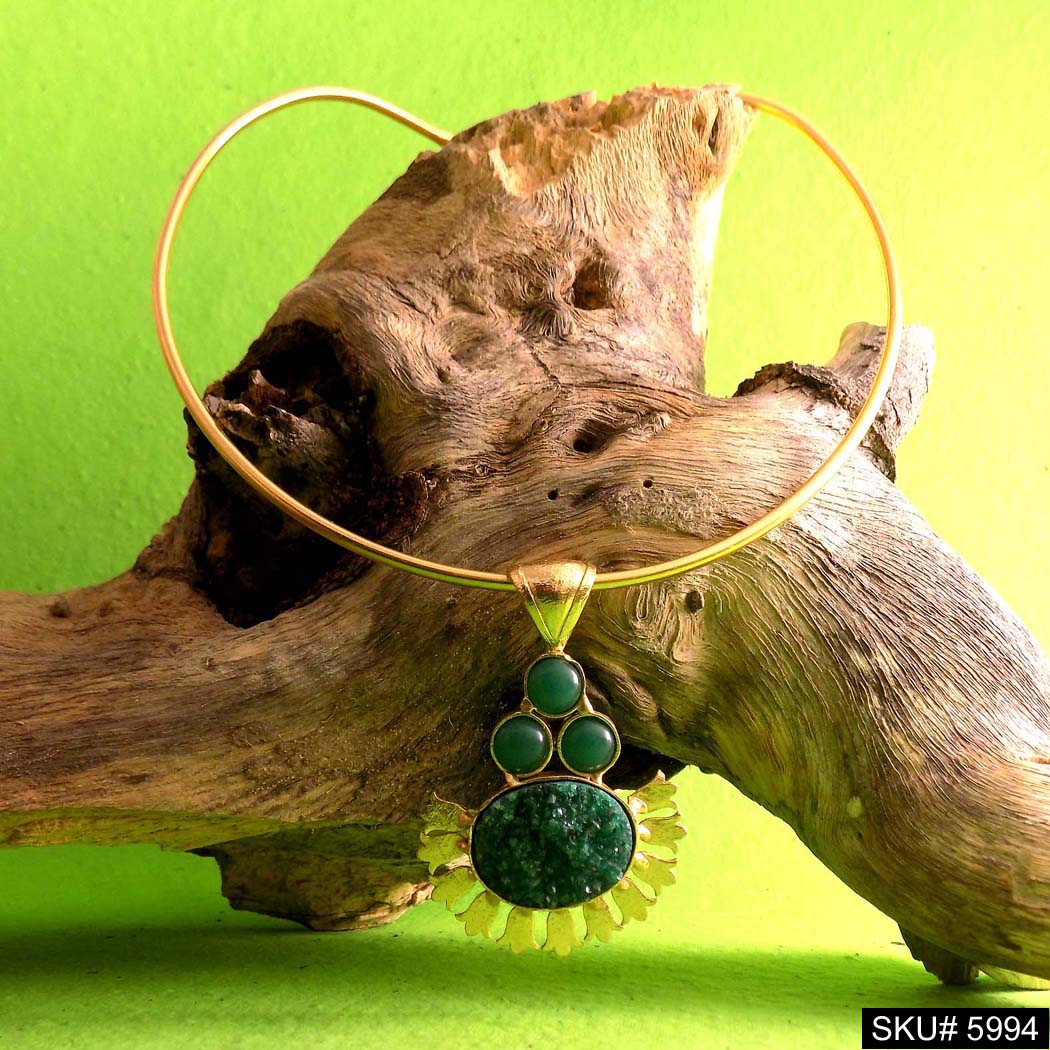 Gold plated Unique Designer Choker With A Big Pendent Green Stone SKU5994