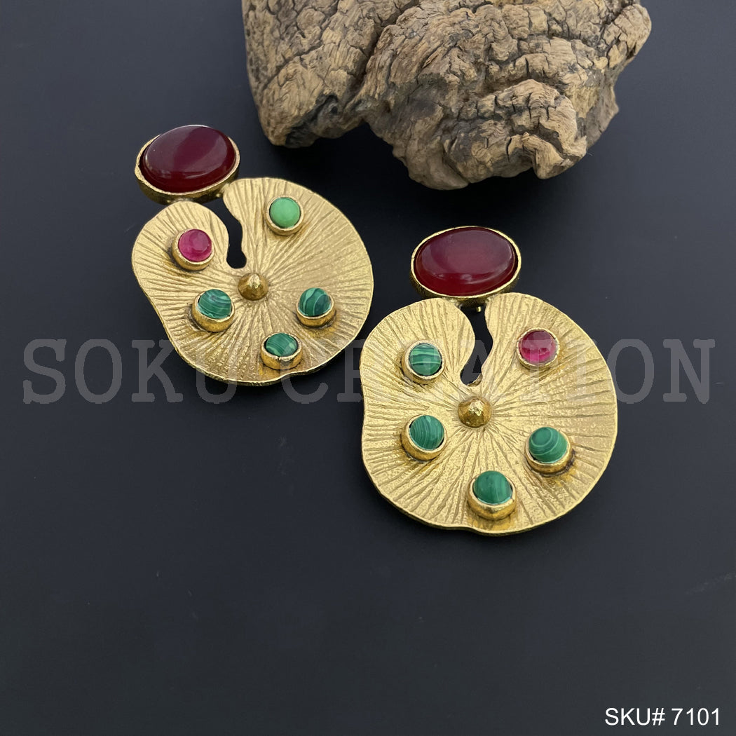 Gold Plated Unique Red and Green Stone Statement Handmade Drop and Dangle Earring SKU7101