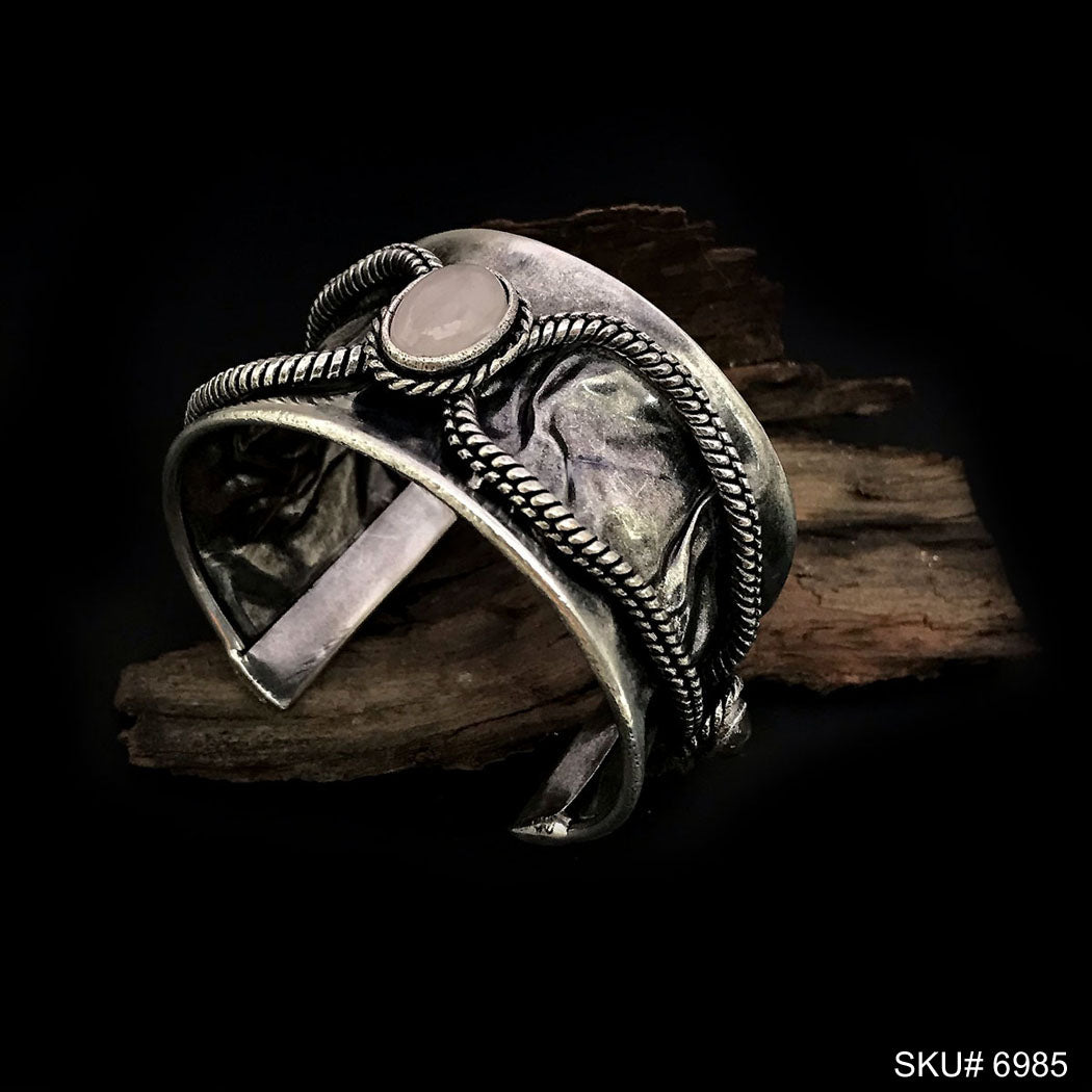 Mattel Plated Hammered Cuff with Gemstone Twisted Wire Design of Cuff SKU6985