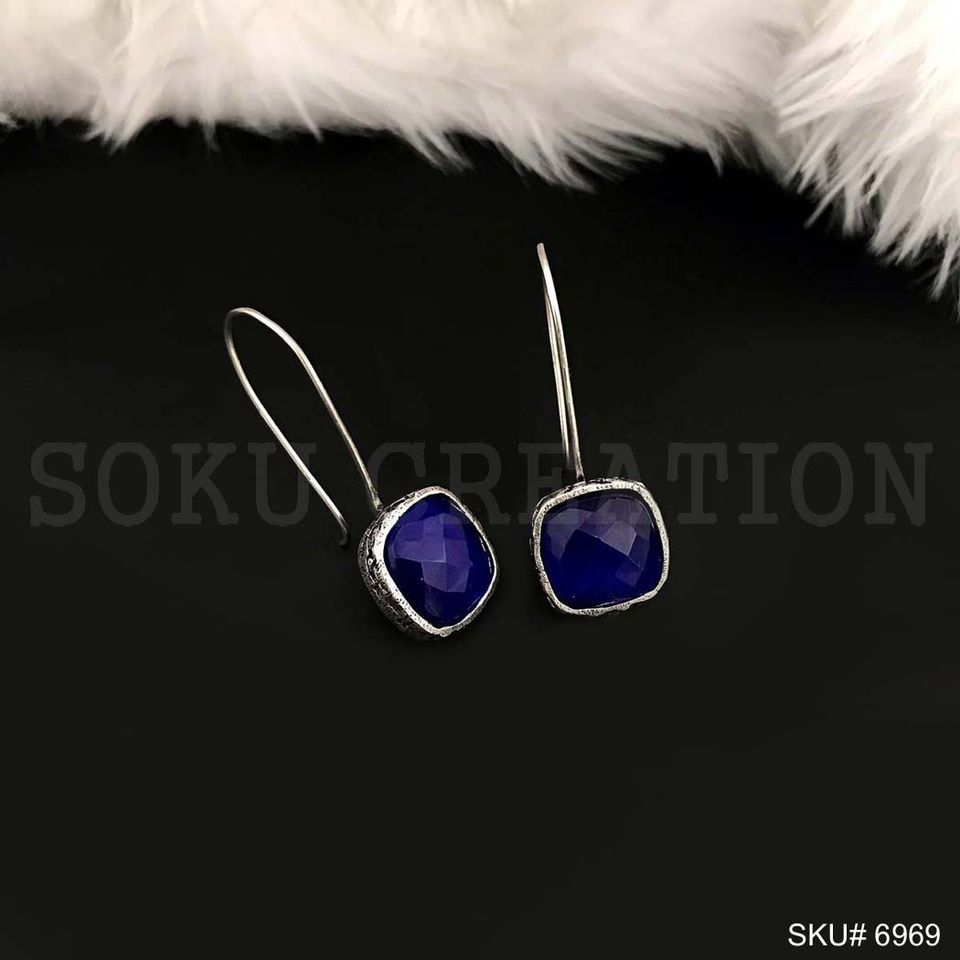 Silver plated Simple Delicate Blue Stone Ear Wire Earrings SKU6969