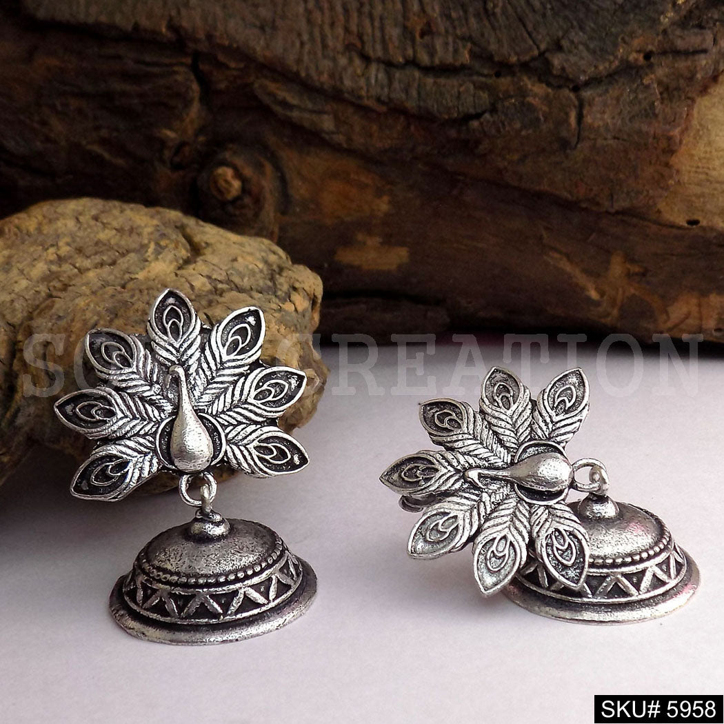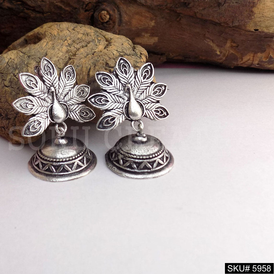 Silver plated Designer Peacock Jhumki Earring SKU5958