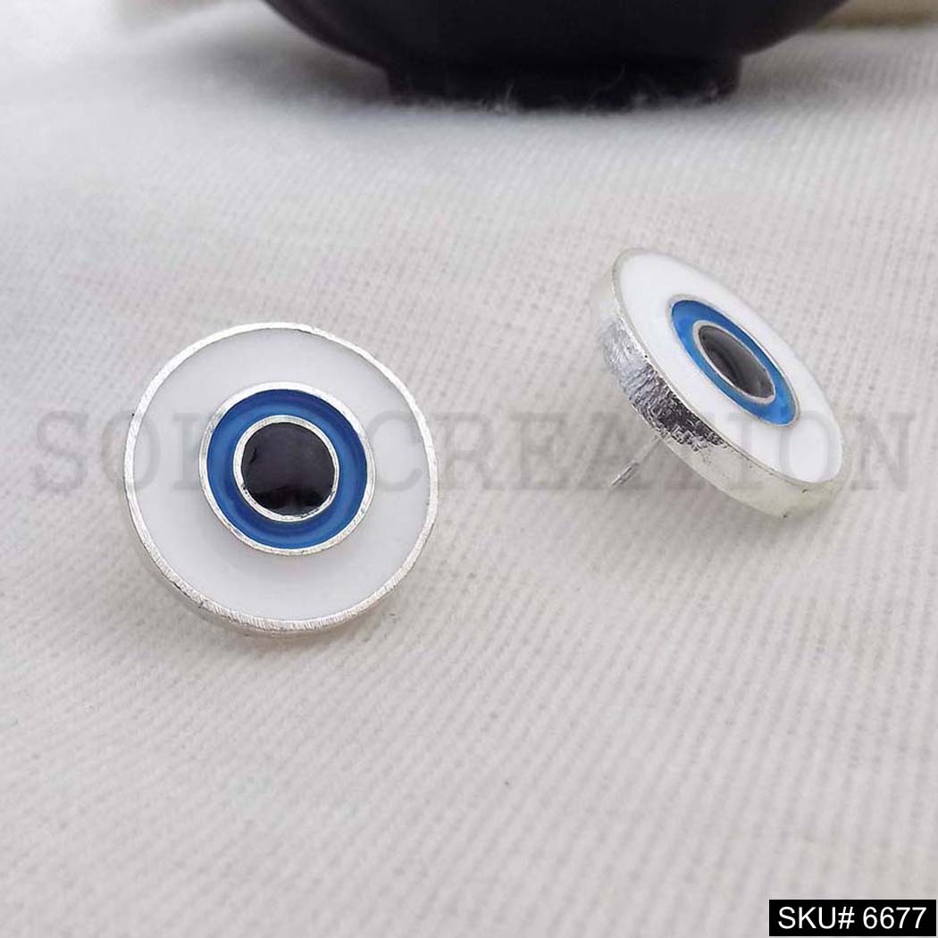 Silver plated Simple Rounded Evil Eye Stud Earrings SKU6677