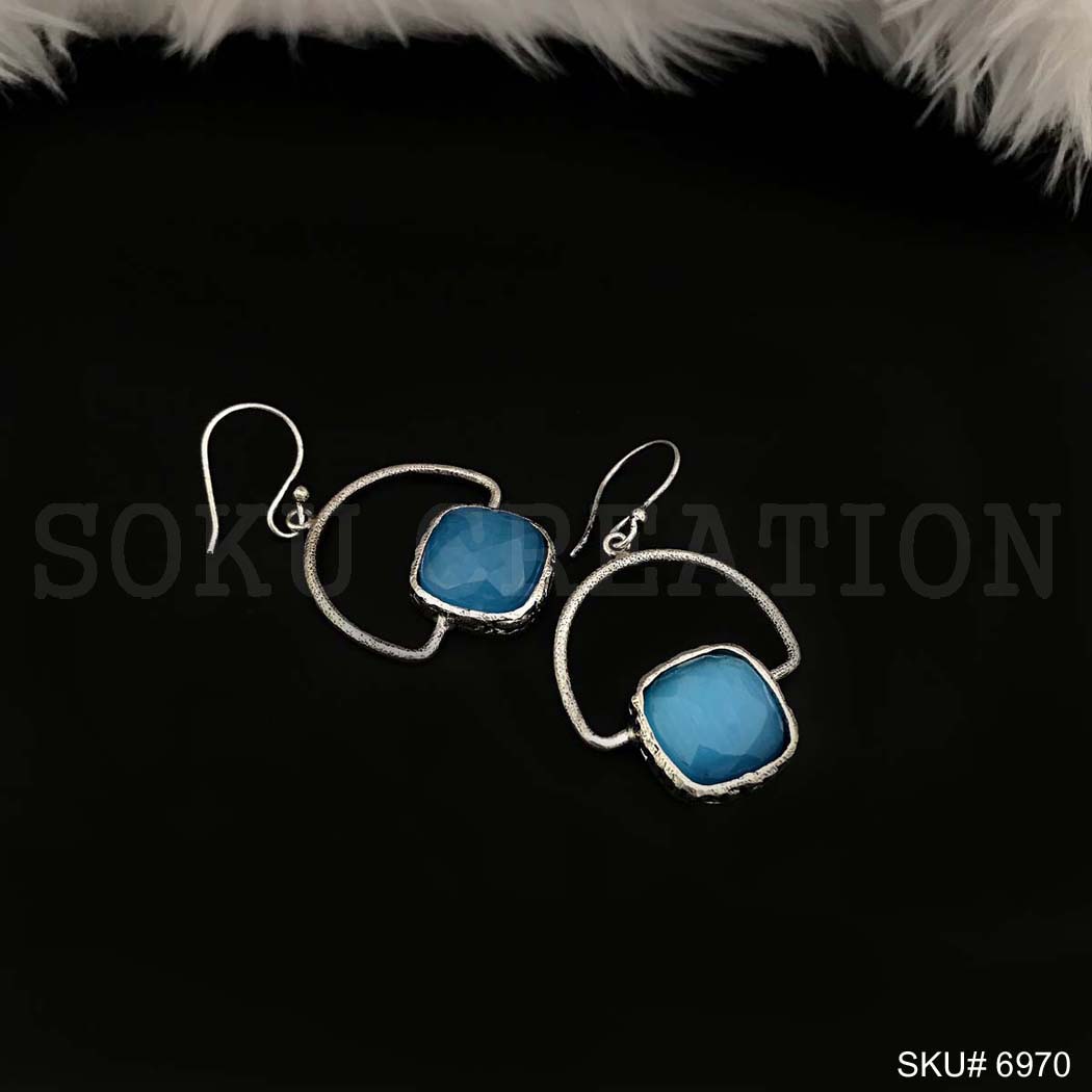 Silver plated Statement Delicate Blue Stone Ear Wire Earrings SKU6970