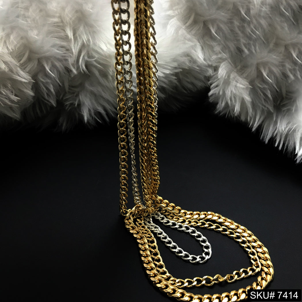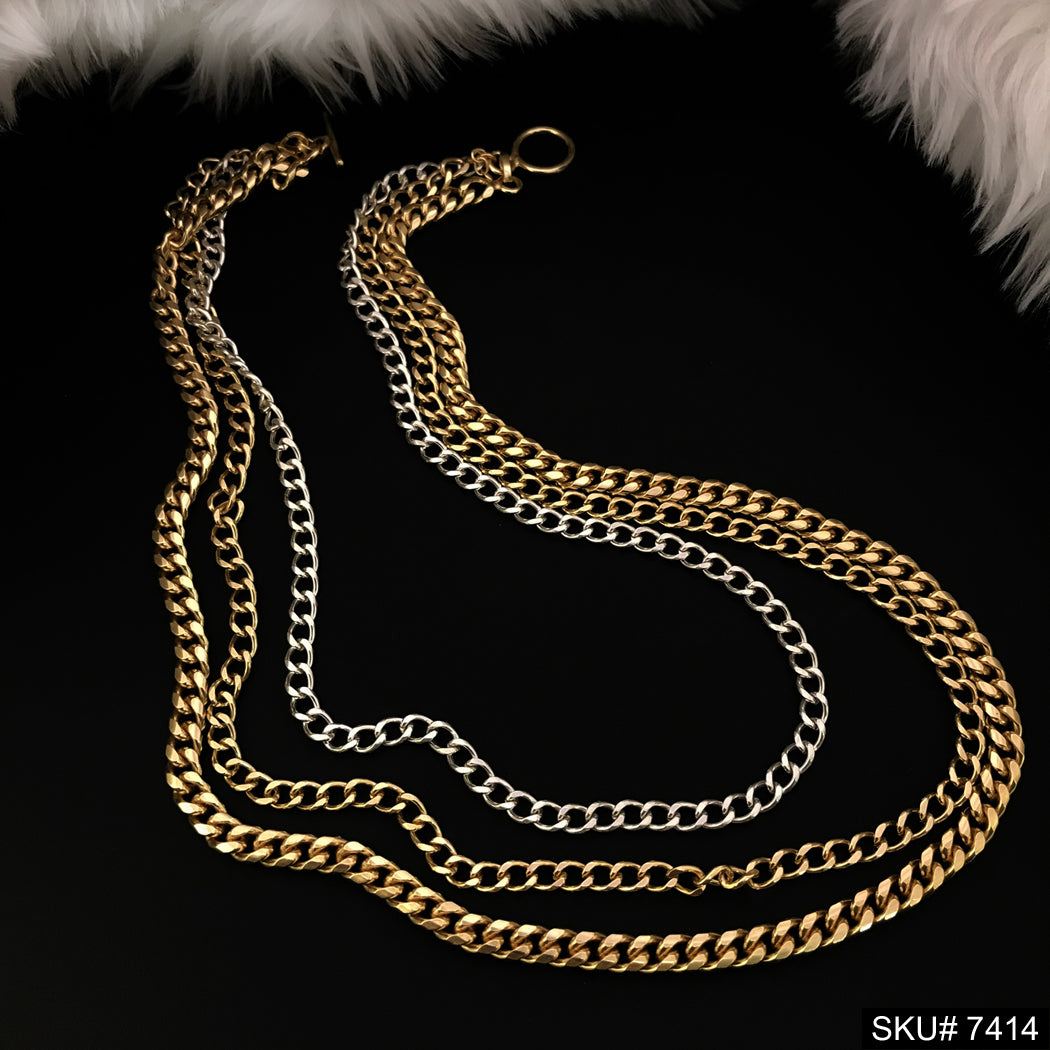 Three Layer pair of chain with two layer of Gold plated and 1 layer of Silver plated chain SKU7414